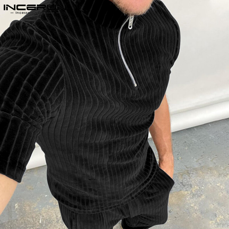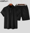 Beehoo INCERUN Mens Short Sleeve Zip Up Sets Shorts Suits Fit Sleepwear Underwear(Western Style)