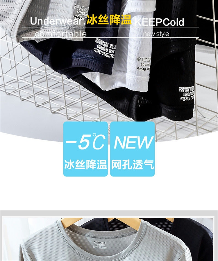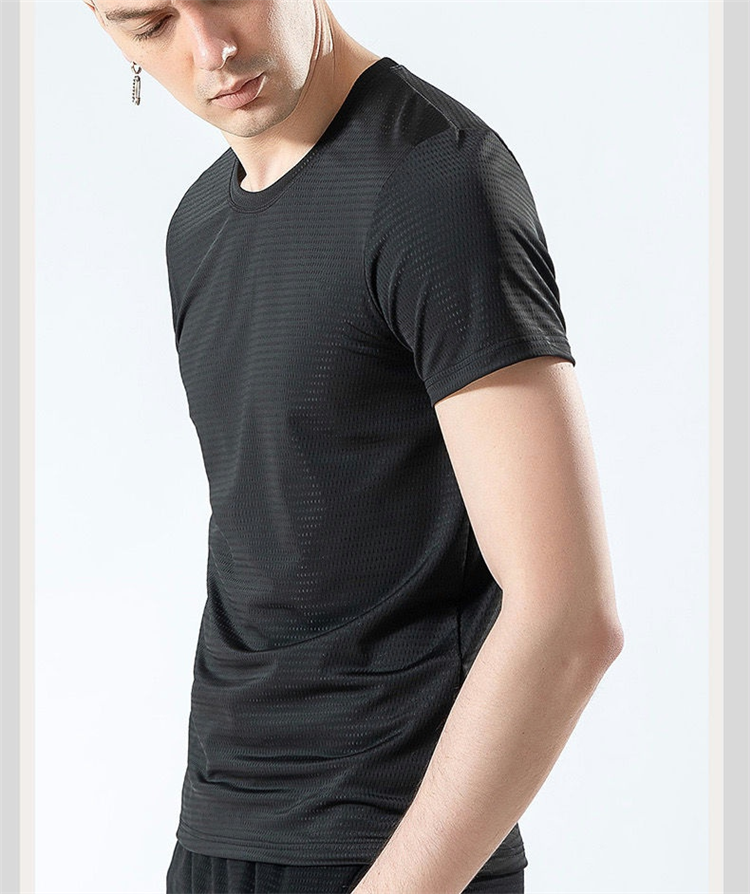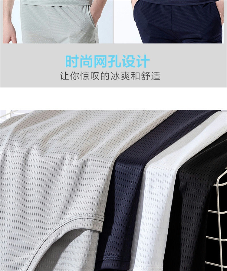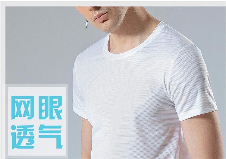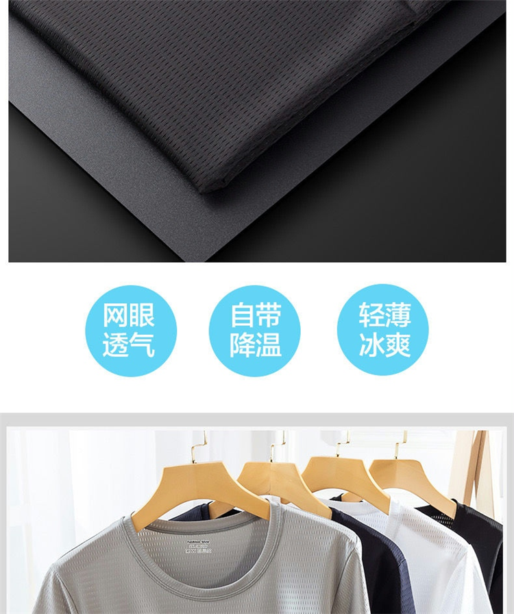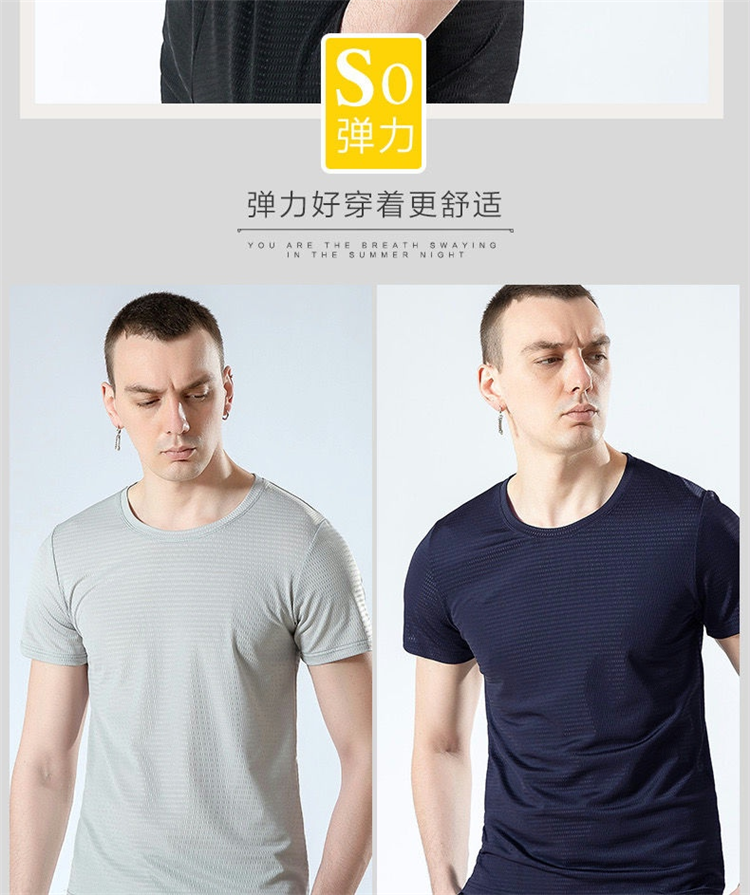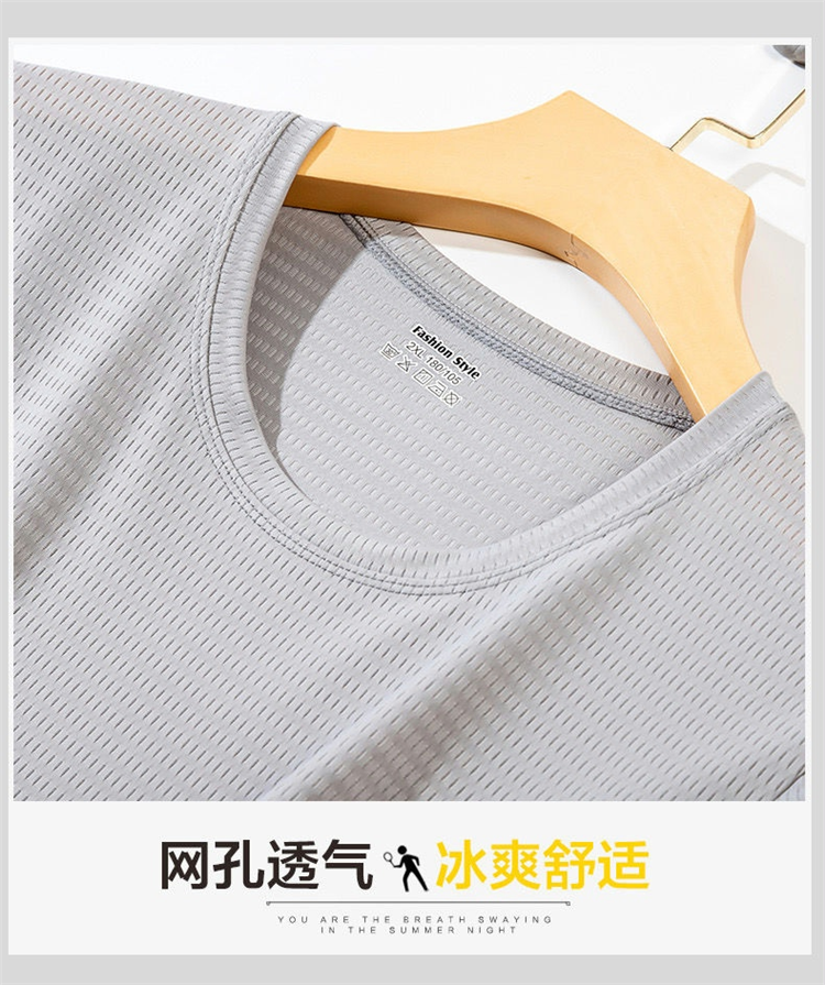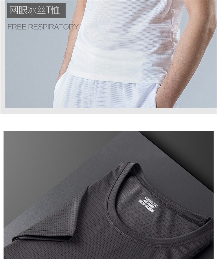 大码冰丝T恤男式网眼短袖男式宽松运动快干网眼透气衬衫夏季半袖
