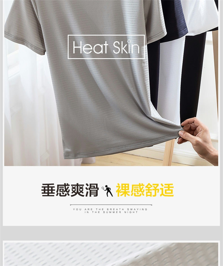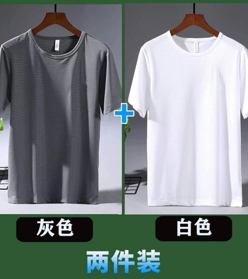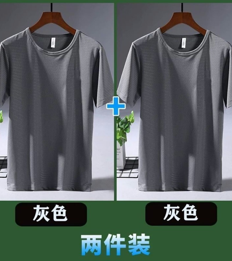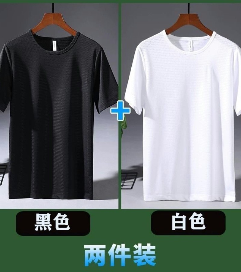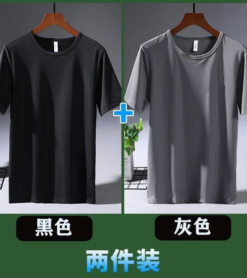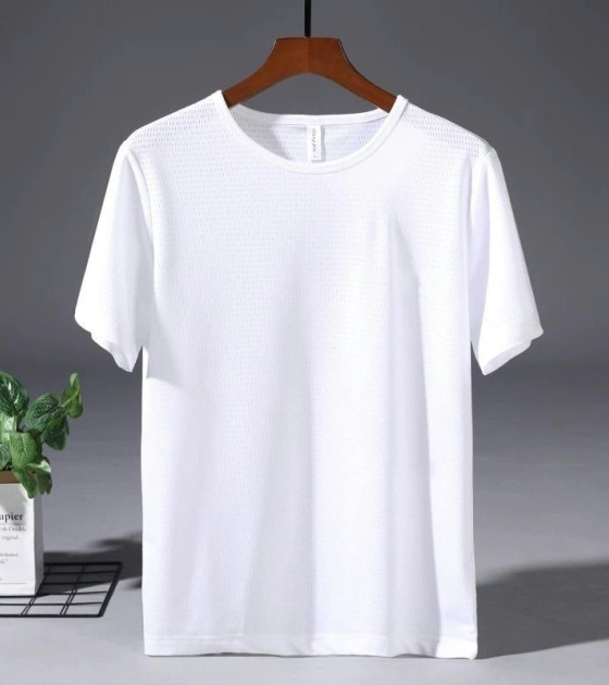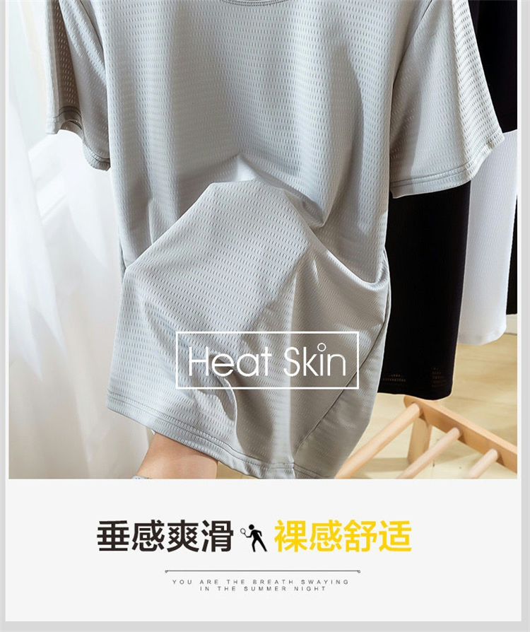 大码冰丝T恤男式网眼短袖男式宽松运动快干网眼透气衬衫夏季半袖
